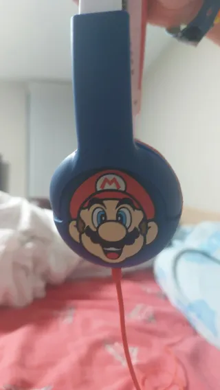Auriculares con diadema inspirados en Super Mario Bros. Tienen un diseño llamativo y son cómodos de usar. - Color rojo, azul y blanco. - Almohadillas rojas. - Cable rojo.