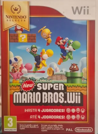 Videojuego para Nintendo Wii, New Super Mario Bros. Wii. - Incluye textos de pantalla y manual en español. - El juego está en inglés, alemán, francés, español e italiano, con manual en portugués y español.