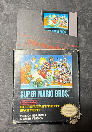Cartucho del clásico juego Super Mario Bros. para Nintendo Entertainment System. - Versión en español. - Incluye caja original. Funciona perfectamente (recientemente comprobado).