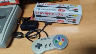 Super Nintendo Famicom en buen estado (ver fotos,). viene con un cable de video s-video practicamente nuevo, 1 mando, adaptador europeo de corriente (220v), funciona , viene con 1 juego completo con caja que es el Super Tetris 2 - Juego: Super Tetris 2 + Bombliss - Incluye mando original - Incluye cables de conexión S+AV