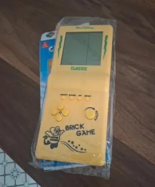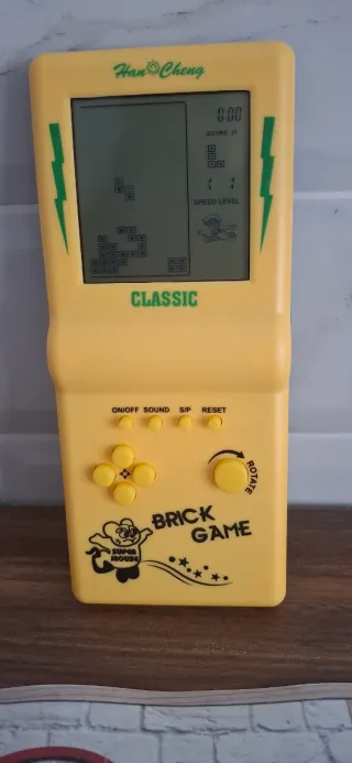Consola portátil de juegos clásicos tipo Tetris. - Diseño compacto y ligero. - Pantalla LCD. - Botones de control para juego. - Incluye juegos clásicos.