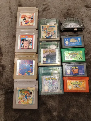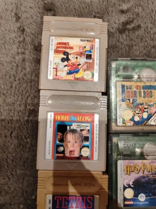 Cartuchos de Game Boy Clásica, Color y Advance: -Mickey's Dangerous Chase 10€. -Solo en casa 10€. -Tetris 10€. -Super Mario Bros Deluxe 10€. -Harry Potter y la Piedra Filosofal 10€. -Pokemon Cristal 40€. -Adaptador 30€. -Harry Potter Quiddich 5€. -Pokemon Verde Hoja 30€. -Mario VS Donkey Kong 5€. -Pokemon Rojo Fuego 35€. -Super Mario Land 6 Golden Coins 5€. -No Negociable -No me desplazo para las ventas.