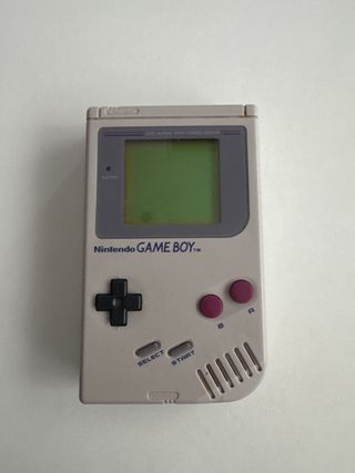 Game Boy original de Nintendo, modelo DMG-01, en color gris y beige. Se incluye la consola y un juego Tetris. La consola presenta señales de uso. - Modelo DMG-01 de 1989 - Juego Tetris incluido - Consola en buen estado, con marcas de uso. No he podido comprobar si funciona.
