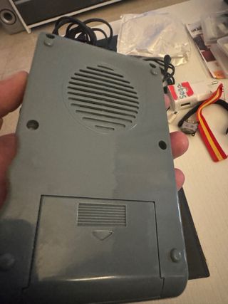 Vendo una consola de videojuegos retro, ideal para amantes de los juegos clásicos. Es de color gris y tiene un diseño peculiar. - Dispone de botones direccionales y de acción. - Incluye pantalla LCD. - Funciona con pilas (no incluidas).