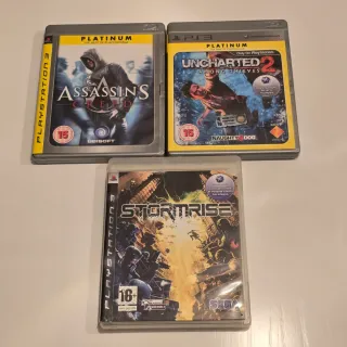 Lote de tres videojuegos para PlayStation 3. Assassin's Creed (Platinum) Uncharted 2: Among Thieves (Platinum) y Stormrise. Funcionan correctamente. Envio con número de seguimiento (Paq Estandar 48/72h) 5€