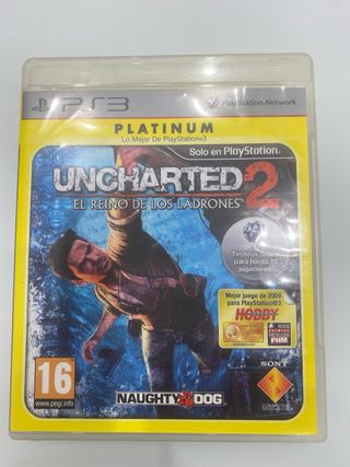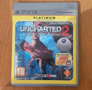 Videojuego Uncharted 2: El Reino de los Ladrones para PlayStation 3, edición Platinum. - Incluye modo multijugador online para hasta 10 jugadores. - Galardonado como mejor juego de 2009 para PlayStation 3 por Hobby. - Clasificación PEGI 16.