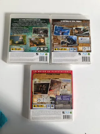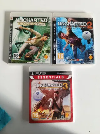 Pack de juegos Uncharted para PlayStation 3. - Uncharted: El Tesoro de Drake - Uncharted 2: El Reino de los Ladrones - Uncharted 3: La Traición de Drake Todos en su caja original y con instrucciones. Los discos están en muy buen estado, sin rayadadas y funcionando perfectamente.