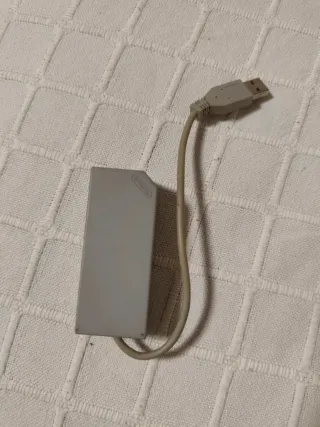Adaptador LAN original de Wii. Sirve para conectar tu consola a internet a través del cable Ethernet. En buen estado.