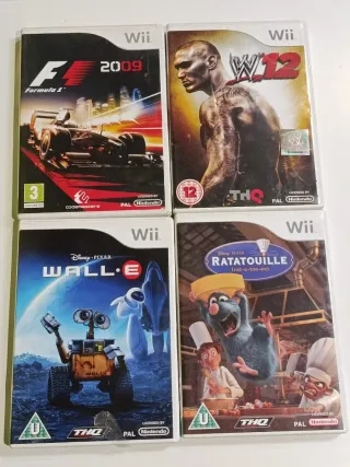 SOLO PUEDO ENVIAR POR WALLAPOP INPOST Conjunto de cuatro videojuegos para Nintendo Wii. - F1 2009 Multilenguaje - WWE 12 Multilenguaje - Disney Pixar Wall-E en inglés - Disney Pixar Ratatouille en inglés