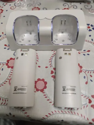 Estación de carga doble para mandos de Wii, incluye dos baterías recargables. Completamente nuevo, en su caja. Tengo 3 unidades. - 1 unidad 10€. - 2 unidades. 18€. - 3 unidades. 25€. - Diseño blanco. - Dos ranuras de carga. - Incluye dos baterías de 2800mAh. - Cable de carga USB a jack. Puedes pasar a verlo o a recogerlo por nuestra tienda, en la calle Inmaculada Concepción, 22, de Madrid. Horario: L-V 11:00- 2:00 y 5:30 - 8:00. Sábados solo por la mañana.