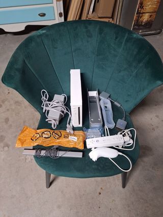 Consola Nintendo Wii Mini en color rojo. Incluye 2 mandos, 2 fundas de silicona, 3 nunchuck. - Diseño compacto y elegante. - Cables de corriente y conexión originales. 6 juegos, incluido figuras adicionales Skylanders. 2 volantes Mario wii originales.