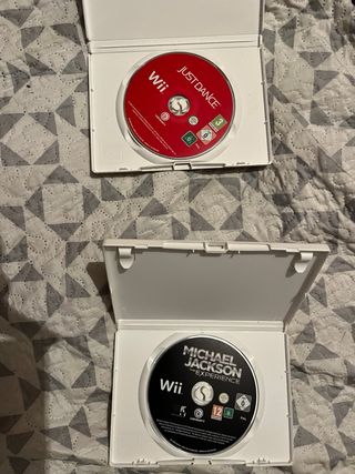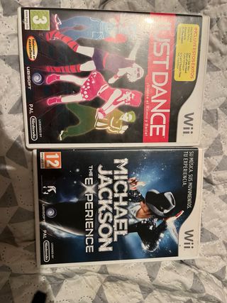 Dos juegos para Wii: Just Dance y Michael Jackson The Experience. - Just Dance: Incluye éxitos como Hot N' Cold y Can't Get You Out of My Head. - Michael Jackson The Experience: Vive la música y los movimientos del Rey del Pop. - Ambos juegos son PAL y están en español.
