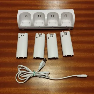 Base de carga para mandos de Wii, con capacidad para cuatro mandos. - Incluye base de carga. - Incluye cuatro baterías recargables. - Incluye cable de carga USB.
