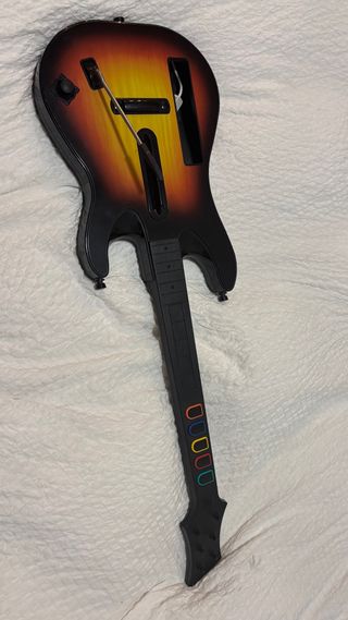 Guitarra para el videojuego Guitar Hero en Wii. Diseño clásico con acabado tipo sunburst. - Botones de colores en el mástil. - Palanca de rasgueo. - Conexión para consola Wii.