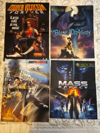 Pack de 4 posters de videojuegos. - Poster de Duke Nukem Forever. - Poster de Blue Dragon. - Poster de Just Cause 2. (Tiene 2 pequeños agujeros) - Poster de Mass Effect.
