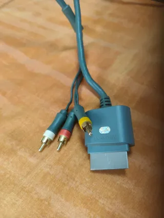 Cable de conexión para Xbox 360. - Conectores RCA para audio y video. - Conector propietario de Microsoft para la consola.