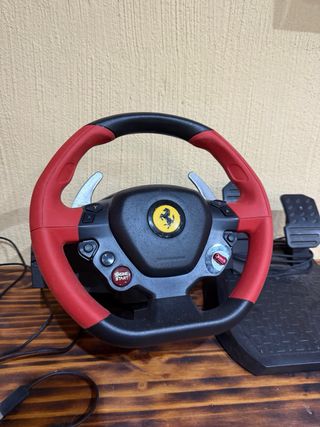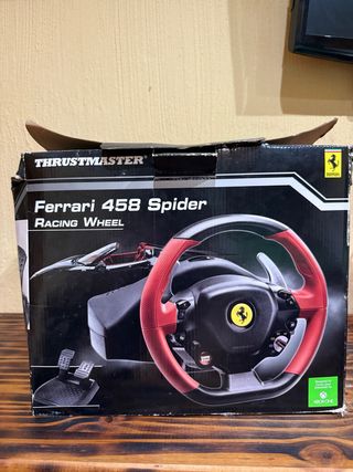Volante de carreras Ferrari 458 Spider. - Diseño inspirado en el Ferrari 458 Spider. - Pedales incluidos. - Compatible con Xbox One. -caja un poco deteriorada pero producto como nuevo , muy poco uso