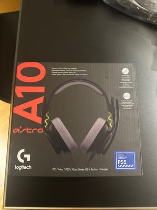 Auriculares gaming con cable Astro A10, marca Logitech. NUEVOS SIN ABRIR Diseñados para una experiencia de juego inmersiva. - Conexión por cable de 3.5 mm. - Regulador de volumen - Micrófono abatible para silenciar. - Compatibles con PC, Mac, PS5, Xbox Series X/S, Switch y móviles.