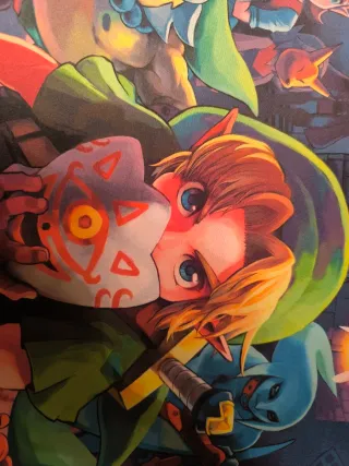 Alfombrilla de ratón con diseño inspirado en The Legend of Zelda: Majora's Mask. Presenta una ilustración colorida con varios personajes del juego. - Diseño de Majora's Mask. - Ilustración detallada de personajes.