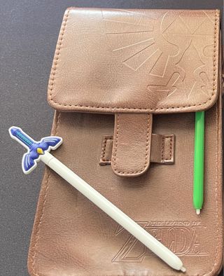 Funda marrón con diseño de The Legend of Zelda para Nintendo 3DS. Incluye dos lápices, uno blanco y otro verde. - Diseño inspirado en The Legend of Zelda. - Material: Piel sintética. - Incluye dos lápices.
