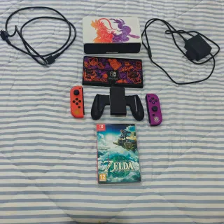 Consola Nintendo Switch OLED edición especial Pokémon con accesorios. - Mando Pro. - Juego The Legend of Zelda: Tears of the Kingdom.