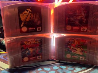Lote de dos videojuegos clásicos de Nintendo 64. - The Legend of Zelda: Ocarina of Time(completo con extras) - The Legend of Zelda: Majora's Mask(completo) -Expansión pak incluido(completo). -Espectacular pack formado por 2 de los mejores juegos de la nintendo 64 y de la historia,protectores de metraquilato personalizado para una mayor conservacion,cajas en buen estado,pero con desgaste visible debido a su tiempo,todo 100%original y para amantes del coleccionismo...pregunta sin compromiso... -+Libro de comic de zelda ocarina of time de regalo🔝 -Lo que se ve colección en buen estado y con mucha vida🫶🏽