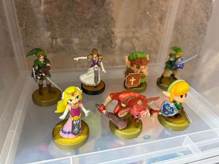 Colección de 7 figuras Amiibo de la saga The Legend of Zelda. - Incluye personajes icónicos de la serie. - Perfectos para coleccionistas y fans de Zelda. - Cada Amiibo viene en su base. - Figuras detalladas y de alta calidad.