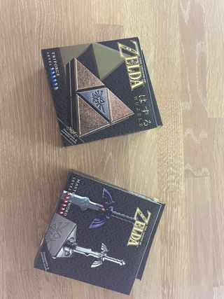 20€ cada uno o 40€ los dos. Sólo montados y desmontados una vez. Como nuevos. Embalaje original con todos los elementos. Dos puzzles metálicos de la colección Huzzle de The Legend of Zelda. Incluye el puzzle de la Trifuerza y el de la Master Sword. - Puzzle Trifuerza: Nivel de dificultad. - Puzzle Master Sword: Nivel de dificultad.