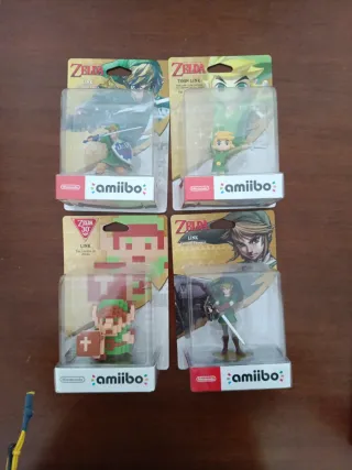 Lote de figuras amiibos de la saga The Lengend of Zelda. El Lote incluye los 4 amiibos - Toon Link - Link pixel - Link Twilight Princess - Link Skyward Sword No se venden por separado