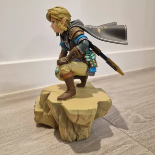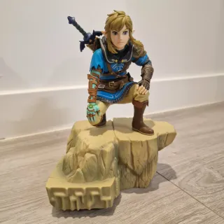 Figura coleccionable de Link de The Legend of Zelda: Tears of the Kingdom. Representa al personaje en una pose dinámica sobre una base rocosa. - Detallada figura de Link. - Base temática de roca.