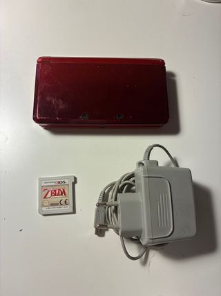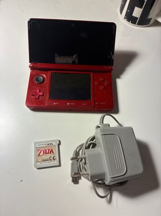 Consola Nintendo 3DS en color rojo, junto con el juego The Legend of Zelda. - Incluye cargador. - Cartucho de juego The Legend of Zelda.