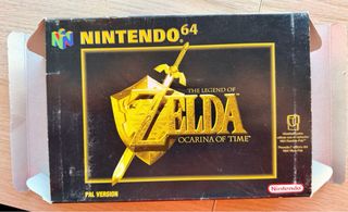 Caja del videojuego The Legend of Zelda: Ocarina of Time para Nintendo 64. - Versión PAL. - Diseñado para utilizar con el cartucho N64 Rumble Pak.