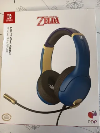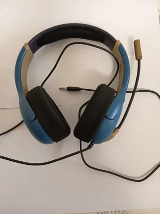 Auriculares con micrófono con licencia oficial de Nintendo Switch, inspirados en The Legend of Zelda. - Diseño en azul y dorado. - Diadema acolchada. - Micrófono flexible.