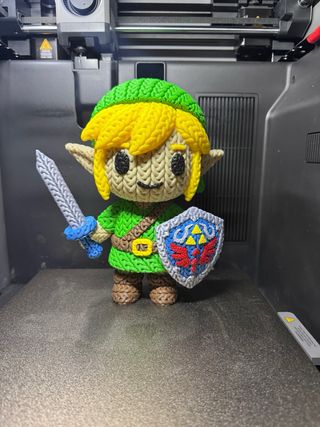 Figura impresa en 3D efecto crochet del personaje Link de la saga Zelda. Ideal para coleccionistas. +22 cm. - Diseño detallado. - Colores vivos.