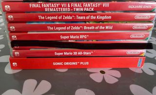 Lote de videojuegos para Nintendo Switch. Menos el Super Mario 3D All Stars, algunos ni siquiera tienen uso. PRECIO LOTE NO NEGOCIABLE.Precio Individual: - Final Fantasy VII & Final Fantasy VIII-Remastered - Twin Pack ---30€ - The Legend of Zelda: Tears of the Kingdom---- 45€ - The Legend of Zelda: Breath of the Wild----40€ - Super Mario RPG----30€ - Super Mario 3D All-Stars-----75€ - Sonic Origins Plus-----20€( Precintado)