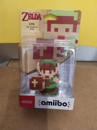 Figura Amiibo de Link de The Legend of Zelda, con un diseño pixelado inspirado en los 8 bits. - Figura de Link. - Diseño pixelado. - Coleccionable de Nintendo.