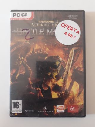 Warhammer Battle March para PC. Expansión del juego Mark of Chaos. Black Hole Entertainment, Deep Silver. Juego de estrategia rts precintado. Está sin abrir pero tiene una esquina rota. Regalo con la compra de cualquier otro juego de mi perfil. Hago envíos.