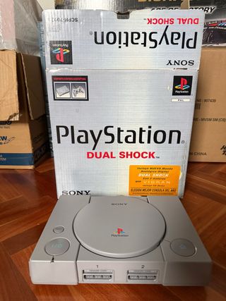 Consola PlayStation 1 en color gris, modelo Dual Shock. - scph 7002 - - Etiquetada como Mejor Consola del Año.