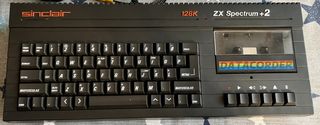 Consola Sinclair ZX Spectrum +2 de 128K en color negro. Incluye varios juegos en formato cassette y accesorios. Todo es original y funcional - Consola ZX Spectrum +2 128K. - Fuente de alimentación. - Manual de usuario. - Joystick Quick Joy +2. - Cable de conexión AV. - Juegos incluidos: Tennis, Game Over, Phantomas, Army Moves, Aspar y otros. - Cinta de datos Datacorder.