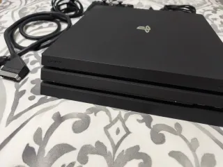 Consola PlayStation 4 Pro en color negro, lista para horas de entretenimiento. Incluye mando y cables. - Incluye guitarra para juegos. - Varios juegos incluidos.