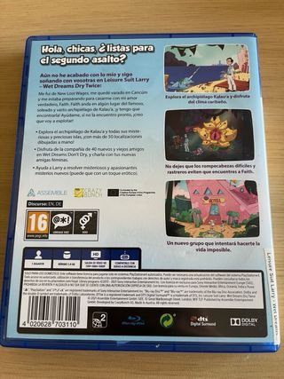 Videojuego para los nostálgicos de Leisure Larry Wet Dreams Dry Twice para PlayStation 4 en perfecto estado. Muy buena aventura gráfica con bastantes ubicaciones y horas de juego