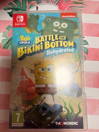 Videojuego Bob Esponja: Battle for Bikini Bottom - Rehydrated para Nintendo Switch. - Juego de plataformas. - Clasificación PEGI 7.