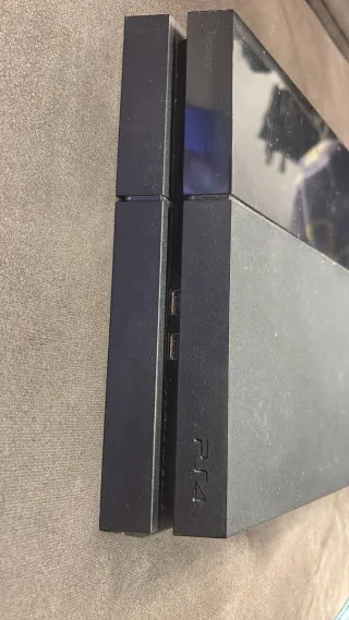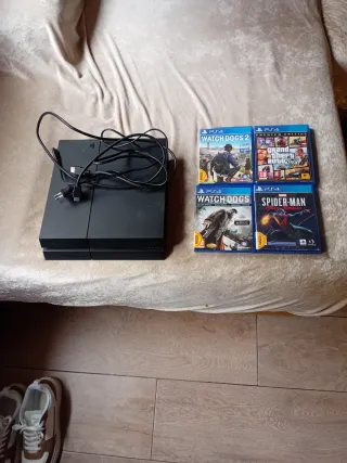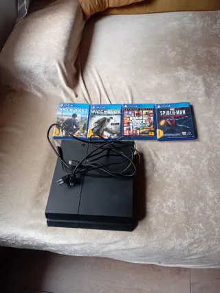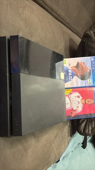 Consola PlayStation 4 en color negro. La consola enciende y funciona perfectamente. Estado estético: -Tiene pequeñas rayaduras en el exterior de la carcasa. -No incluye roturas,grietas ni laterales íntegros. Incluye: -Cable HDMI. -Cable USB para el mando (no original). - FIFA 22 - FIFA 20 Perfecta para regalar estás navidades a los más pequeños y no gastarte 150€. Alguna duda contacta. Precio honesto a lo que es para la consola.