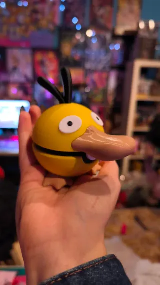 Pokeball en forma de Psyduck. - Diseño exclusivo - Detalle del pico característico de Psyduck. - Incluye las antenas negras. - Patas visibles en la parte inferior. *Precios especiales por la compra de varias unidades*