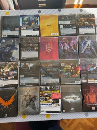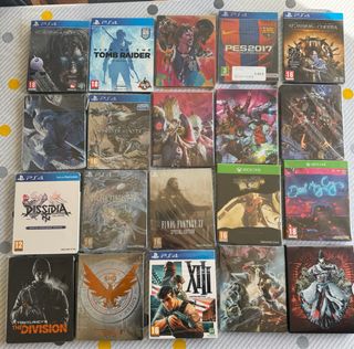 Colección de steelbooks de videojuegos para PS4 y XBOX. - Ediciones metálicas coleccionables. - Incluye títulos como Rise of the Tomb Raider, Monster Hunter, Final Fantasy, Yakuza... Buen estado general de las cajas y algunas incluyen el juego. Si hay alguna en concreto que te interese, puedo enviar más fotos y detalles.