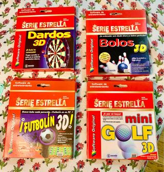 Lote de 4 videojuegos de PC en formato CD de la Serie Estrella de Data Becker y Marcombo - Dardos 3D - Bolos 3D - Futbolín 3D - Mini Golf 3D