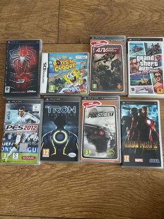 Lote de videojuegos para consolas PSP y Nintendo DS. - Spider-Man 3 (PSP) - Bob Esponja: Batalla por Fondo de Bikini (DS) - ATV Offroad Fury Pro (PSP) - Grand Theft Auto: Vice City Stories (PSP) - PES 2012 Pro Evolution Soccer (PSP) - Tron Evolution (PSP) - Need for Speed ProStreet (PSP) - Iron Man 2 (PSP) 5€ cada uno