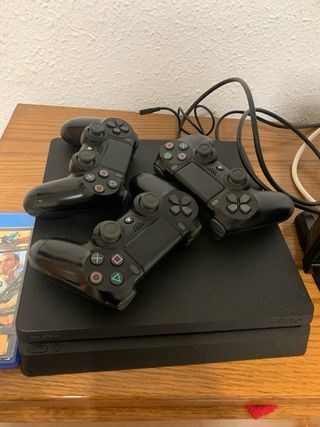 Consola de videojuegos PlayStation 4 en color negro. - Diseño elegante y compacto. - Puerto USB frontal. Con dos mandos todos sus cableados precio negociable cambio por ps5 aportando diferencia