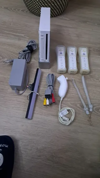 Consola Nintendo Wii en color blanco, lista para horas de diversión. Uno de los mandos no funciona bien si no recuerdo mal - Incluye consola. - 3 Mandos Wii Remote. - Nunchuk. - Adaptador de corriente. - Cable AV. - Sensor Bar. Tambien la vendo con 5 juegos por 140euros