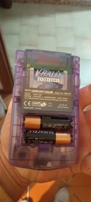 Consola portátil clásica. - Diseño transparente morado. - Pantalla a color. Funcionando perfectamente. Unico defecto es que se perdio la tapa de las pilas .2 juegos incluidos - Botones de control direccional y botones A/B.